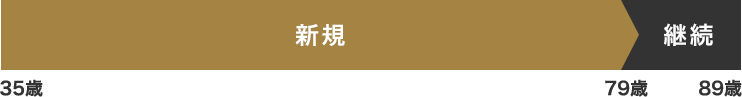 35歳ー79歳(継続年齢89歳まで)